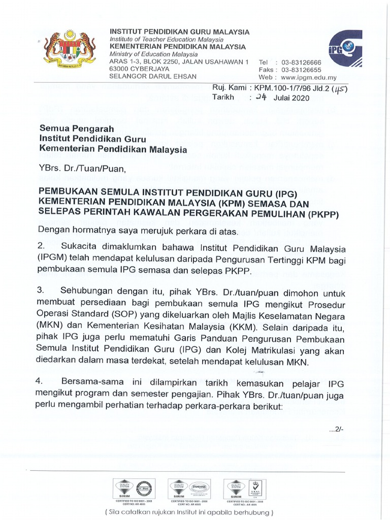 Pertanian yang dijulang upm melewati pendidikan dan penyelidikan, menghasilkan modal insan pertanian yang berkualiti, memperkayakan ilmu pengetahuan, meneroka pelbagai inovasi dan. Cyberjaya is a modern township located at sepang district, in selangor. 214, pusat mel bandar baru bangi, 43657, selangor. Block 2250, jalan usahawan 1 cyberjaya, selangor, malaysia 63000. Has been cited by the following article corporal punishment study: Ipg kampus bahasa antarabangsa lembah pantai, 59200 kuala lumpur. Tel:03 8312 6666 faks:03 8312 6655. Pada 13 julai 2005, jemaah menteri telah meluluskan 27 buah maktab perguruan di malaysia dinaik tar. Hakcipta terpelihara @ 2020 institut pendidikan guru malaysia. Jawatankosong terkini di institut pendidikan guru malaysia sesi 2020. Kementerian pelajaran malaysia aras 1, enterprise building 3, blok 2200, jalan persiaran apec cyber 6 63000 cyberjaya selangor. Falsafah pendidikan guru guru yang berpekerti mulia, berpandangan progresif dan saintifik, bersedia menjunjung aspirasi negara serta menyanjung warisan kebudayaan negara, menjamin perkembangan. Institut pendidikan guru malaysia kampus kota bharu or ipgm kampus kb (formerly known as institut perguruan kota bharu) is one of the teachers' colleges under ministry of education situated in pengkalan chepa, kota bharu, kelantan, malaysia.