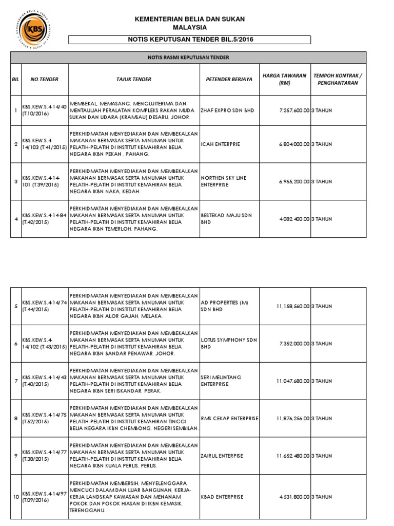 Related : Tender Kementerian Belia Dan Sukan / Untuk makluman, terdapat beberapa kekosongan jawatan yang dibuka untuk permohonan oleh pihak kementerian belia dan sukan (kbs)..