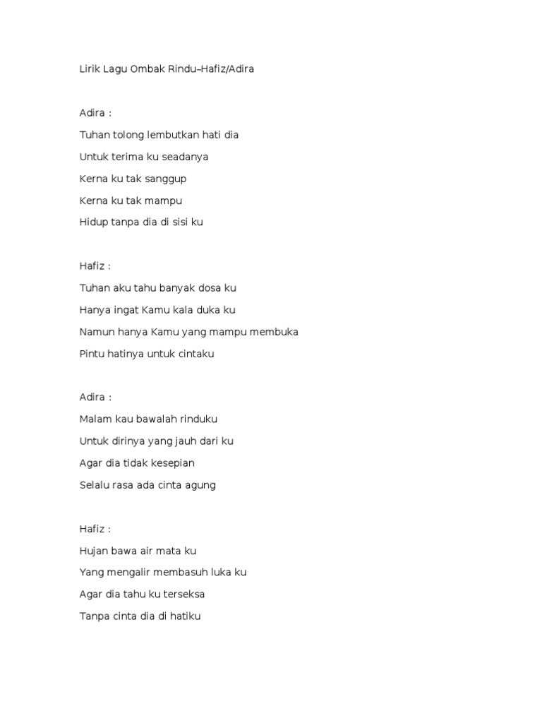 Related : Lirik Lagu Ombak Rindu - Ombak Rindu Mendulaoblongataku - Lirik lagu ombak rinduhafiz/adira adira :.